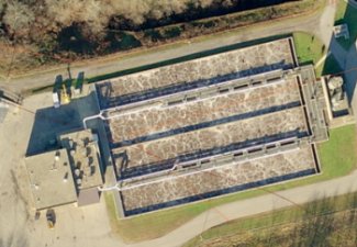 A pipe bridge supporting two 40-inch diameter pipes across the Cayadutta Creek carries effluent from the primary tanks to four (4) aeration tanks equipped with fine bubble diffused aeration systems. In the aeration tanks, microorganisms remove food and convert ammonia to nitrate (nitrification) during an approximate 12 hour detention time. Plant operators ensure that the microorganisms process the wastewater in the most efficient way possible by adjustments at the aeration tank and at the Blower Complex.